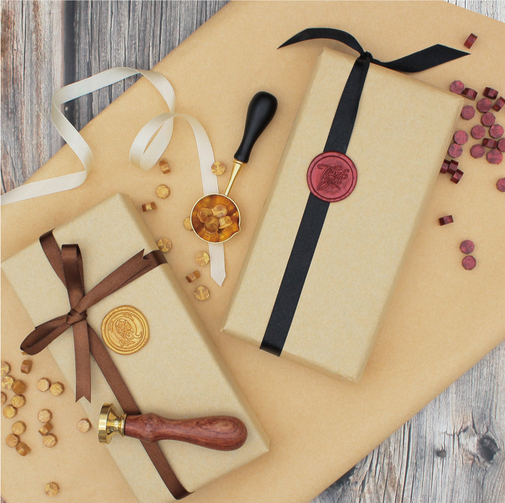除了免費緞帶包裝外,您也可選擇花一點點額外的費用加購客製化火漆章禮物封蠟包裝服務,在原有的商品包裝盒上加上牛皮色包裝紙與火漆章封蠟,每一次都是獨一無二的印記。
