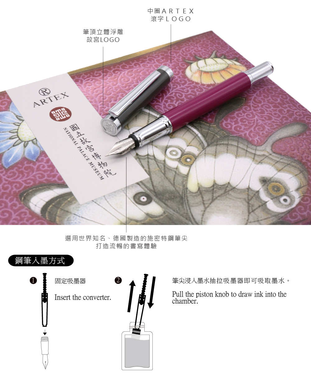 <鋼筆尖>選用德國SCHMIDT施密特不鏽鋼F細尖,出水流暢、品質穩定,適合拿來用於日常的書寫。