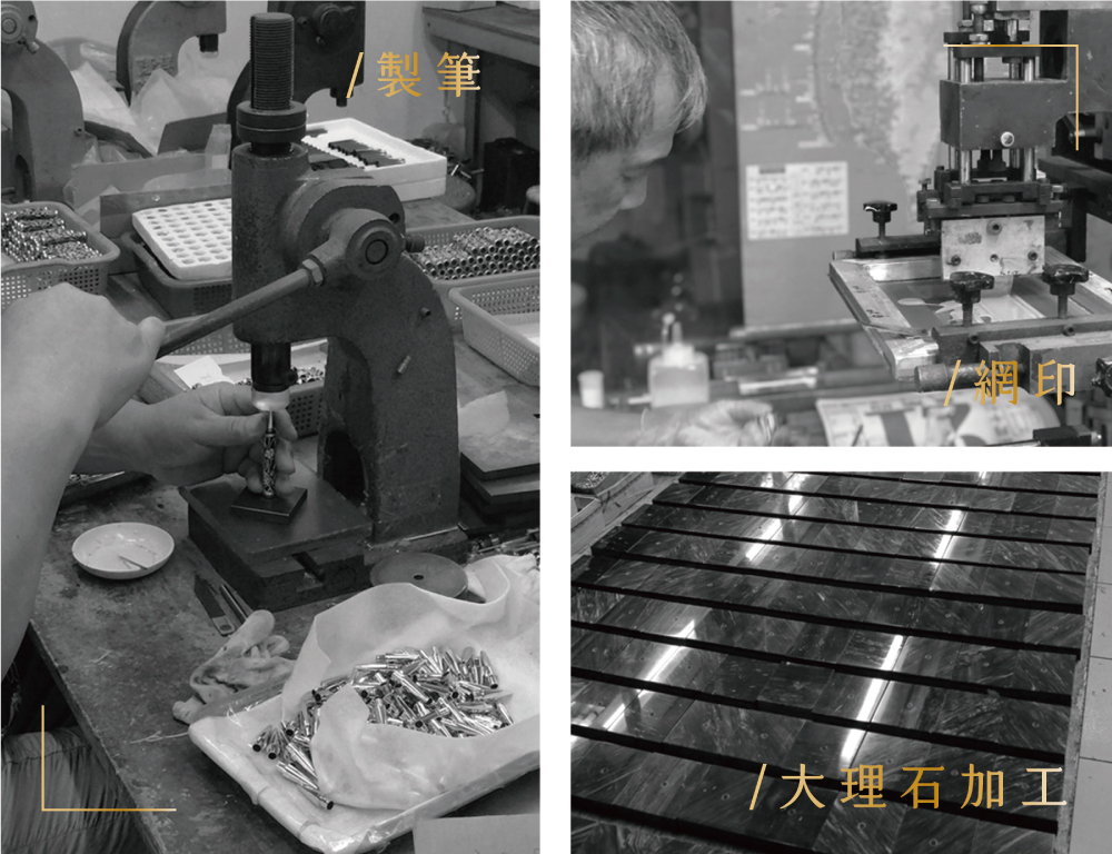 此次所有商品與包裝皆在台灣完成,包含製筆/網印/大理石加工/設計/製造/包裝,皆由台灣在地職人聯手完成!